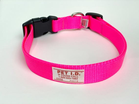Pet ID collars come in 16 different colours .The collars are a nylon material and extremely durable.